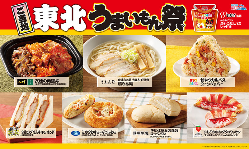 さらに「からあげクン ヤガイ監修 おやつカルパスレッド味」(298円)が登場。「おやつカルパスコーンペッパー」(167円)、「会津らぁ麺うえんで監修 塩らぁ麺」(646円)、「3種のグリルチキンサンド(秋田味噌使用)」(470円)、「牛乳仕込みの白いコッペパン(ミルククリーム&ホイップ)」(194円)、「いちごのホイップクロワッサン(宮城県産いちごのジャム入りホイップ)」(194円)も並びます。