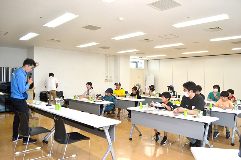 バスツアーには小学生とその保護者6組13人が参加。遠野市へ向かう車内では、東北電力社員によるエネルギー講座が行われ、電気をつくるしくみや日本のエネルギー事情について学びました。「石油や天然ガスなどの資源に乏しい日本は、エネルギー自給率が約13%ととても低い。経済的で地球に優しく、安定的にエネルギーを供給するためには、さまざまな発電方法をバランスよく組み合わせる『エネルギーミックス』という考え方が大切になる」と話しました。