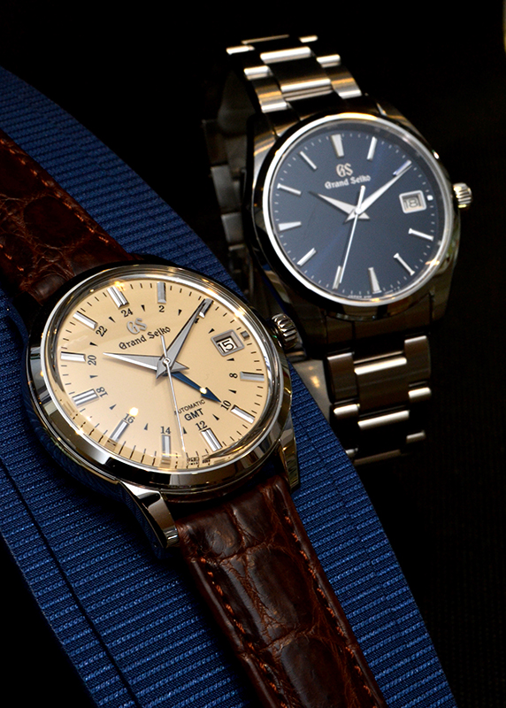 クラシックなデザインで老若男女に圧倒的な人気を誇るグランドセイコー「SBGM221」(671000円/写真手前)と、薄型でありながら堂々とした存在感を放つ同クォーツモデル「SBGP013」(396000円)