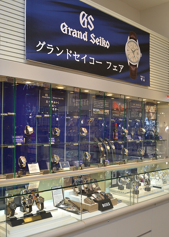 1947年の創業以来、地域に長く愛され、県内3店舗を展開する時計・宝石の専門店。北上市にある「江釣子SCパル店」は、県内2店舗しかないグランドセイコーの正規取扱店で、店頭にはアクセサリーや時計のほか、グランドセイコーの腕時計がずらりと並ぶ。同ブランドは世界最高峰といわれる技術力と精度、洗練されたデザインが特徴。節目の記念や大切な人への贈り物としても人気が高く、特別な一本を求めて遠方からもお客さんが訪れる。