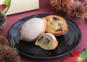 季節限定の新商品「マロンケーキ」(1個350円)。箱入り(2個800円、5個1950円、10個3800円)もある