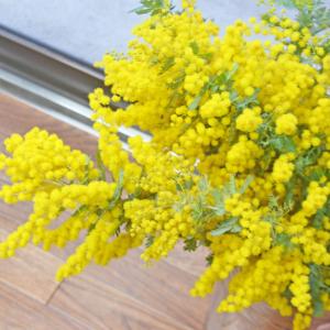 3~4月頃に、ふわふわとした黄色い小さな花を鈴なりに咲かせるミモザ(ミモザアカシア)。マメ科アカシア属の常緑高木で、原産地はオーストラリア。シルバーがかった葉とのコントラストが美しく、シンボルツリーとしても人気を集める。華やかでありながらナチュラルで優しい雰囲気が魅力。花束やリース、ドライフラワーにも重宝される。花言葉は「感謝」「友情」「優雅」「秘密の恋」など。