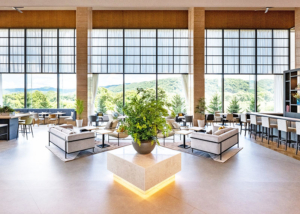 自然豊かな景色を眺められる、ゆったりとした雰囲気の店内