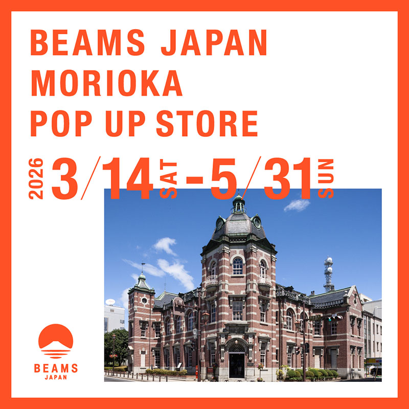 期間限定店舗では工芸品や名産品などのアレンジ商品も販売。「代々栄える」よう縁起を担ぎ、だいだい色に仕上げた郷土玩具「チャグチャグ馬コ」(2970円)や、「BEAMS JAPAN MORIOKA」ロゴがデザインされたTシャツ(7480円)、タオルハンカチ(1320円)などのグッズも並んでいます。営業時間は午前10時~午後4時30分、火曜定休。