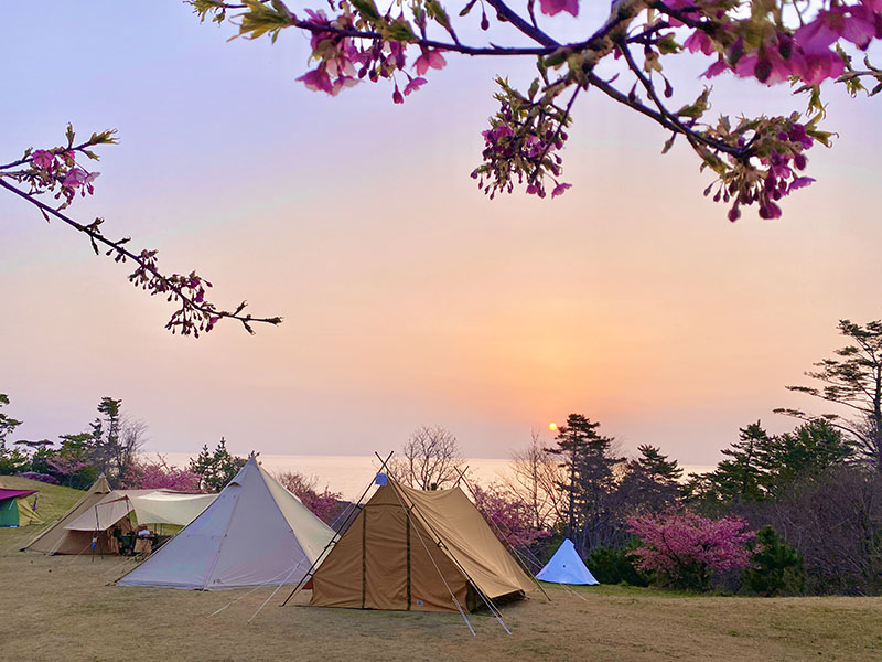 太平洋を臨む神割崎キャンプ場は、美しい日の出、満天の星、季節の花など雄大な自然に囲まれた好立地。タコの唐揚げなどの軽食、オリジナルドリンクといったサイドメニューのほか、BBQ食材も販売し、宿泊だけでなくピクニックの利用にもぴったりです。
