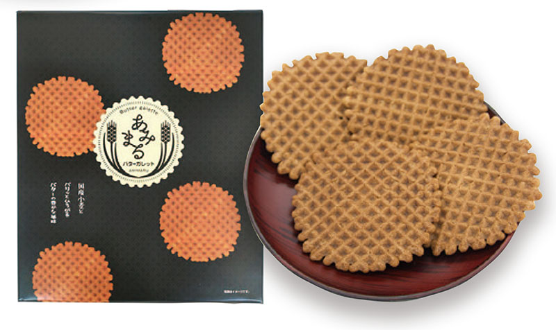 佐々木製菓の「名代 三色せんべい」は、南部せんべいの生地に卵、マーガリン、砂糖を加え、コクのあるサクサク食感に焼き上げた、ほんのり甘くて香ばしいクッキー風味のせんべい三種詰め合わせ。パリッと軽い歯ごたえの「あみまる バターガレット」は、国産小麦とバターの風味がくせになる。